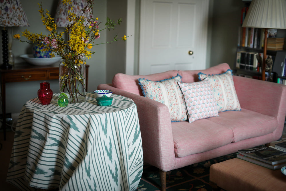 Beautiful linen/cotton fabric from Mallorca. We stock fabric from three of Mallorcan fabric houses: Bujosa, Teixits Vicens and Riera. The artisanal nature, texture, depth of colour and the enduring designs make these fabrics irresistible. We do not stock all of the designs that each fabric house produces but have picked a variety which we are not only our favourites but we feel go well with other Mews Furnishings items. If you have a particular design or colour that you would like, please contact us and we would love to help.