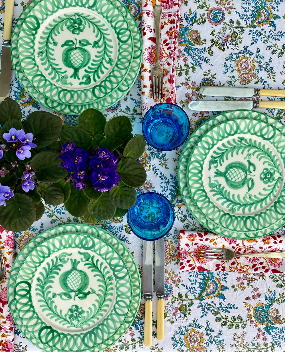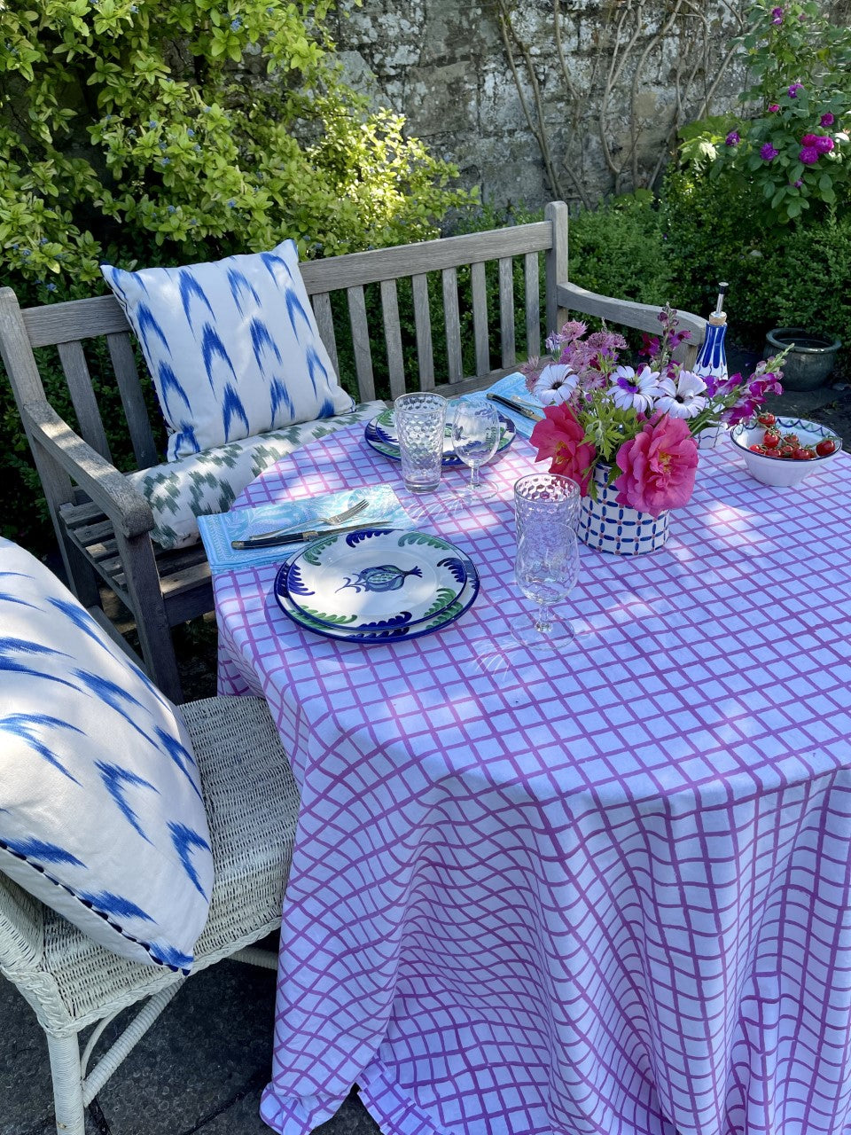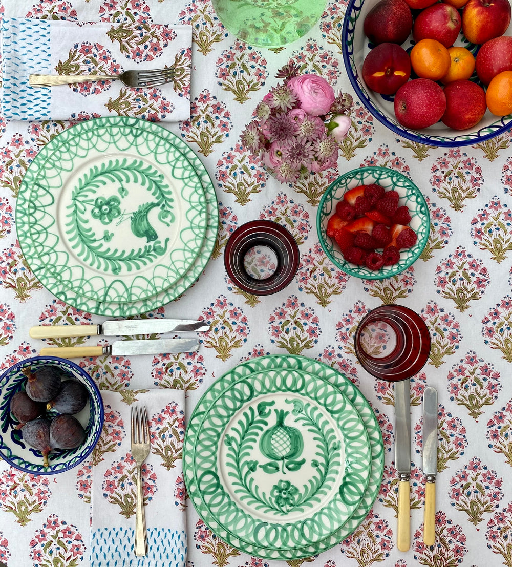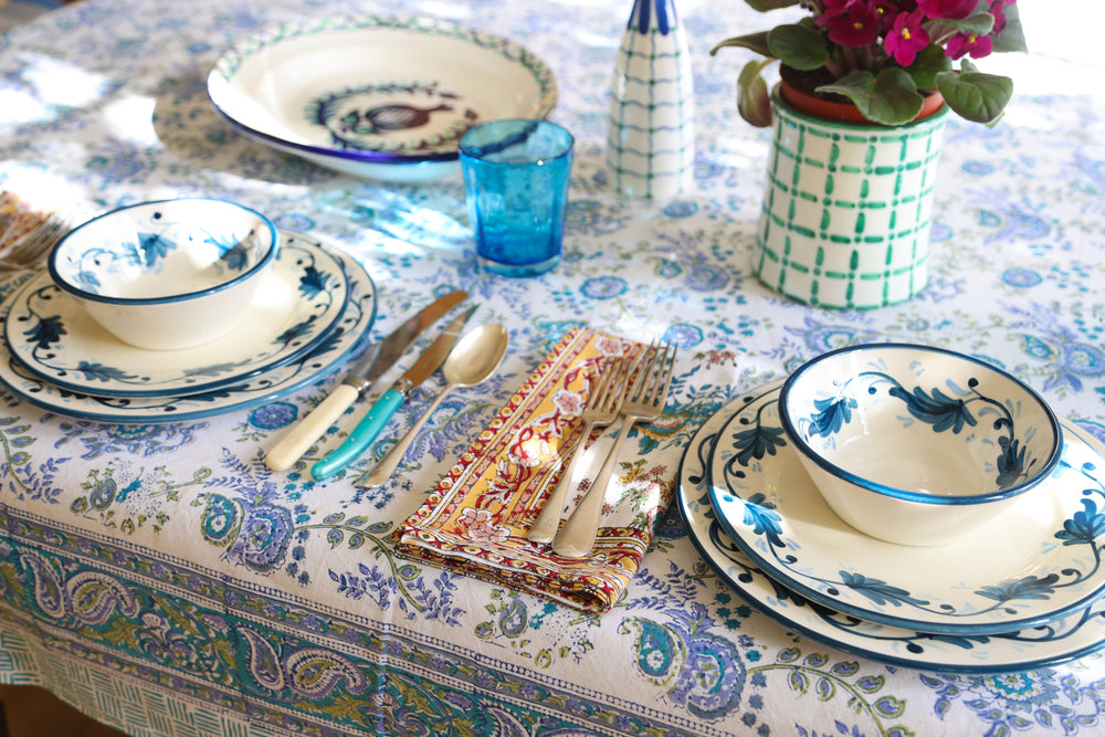 Beautiful cotton tablecloths and napkins, in a range of patterns, exclusively from Pigott's Store in Sydney as well as our own range of The Mews handblock printed tablelinen.